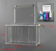 The Poltex DECO line features durable 1/4in thick acrylic construction, shiny, flame-polished edges, and stainless-steel caps for mounting for a decorative look. Wall mount sanitizing station holds wipes, masks, gloves, tissues, hand sanitizer, etc. Comes with sign sleeve to display your own signage for visitors. Padlock included (all locks keyed the same). Comes with 3/3.5in riser to accommodate different heights of top dispense items to lift them closer to opening. Top dispense or front dispense. Choose from 2 or 3 position. SEE IMAGE FOR DIMENSIONS. Includes all mounting hardware (screws, anchors, stainless steel caps).