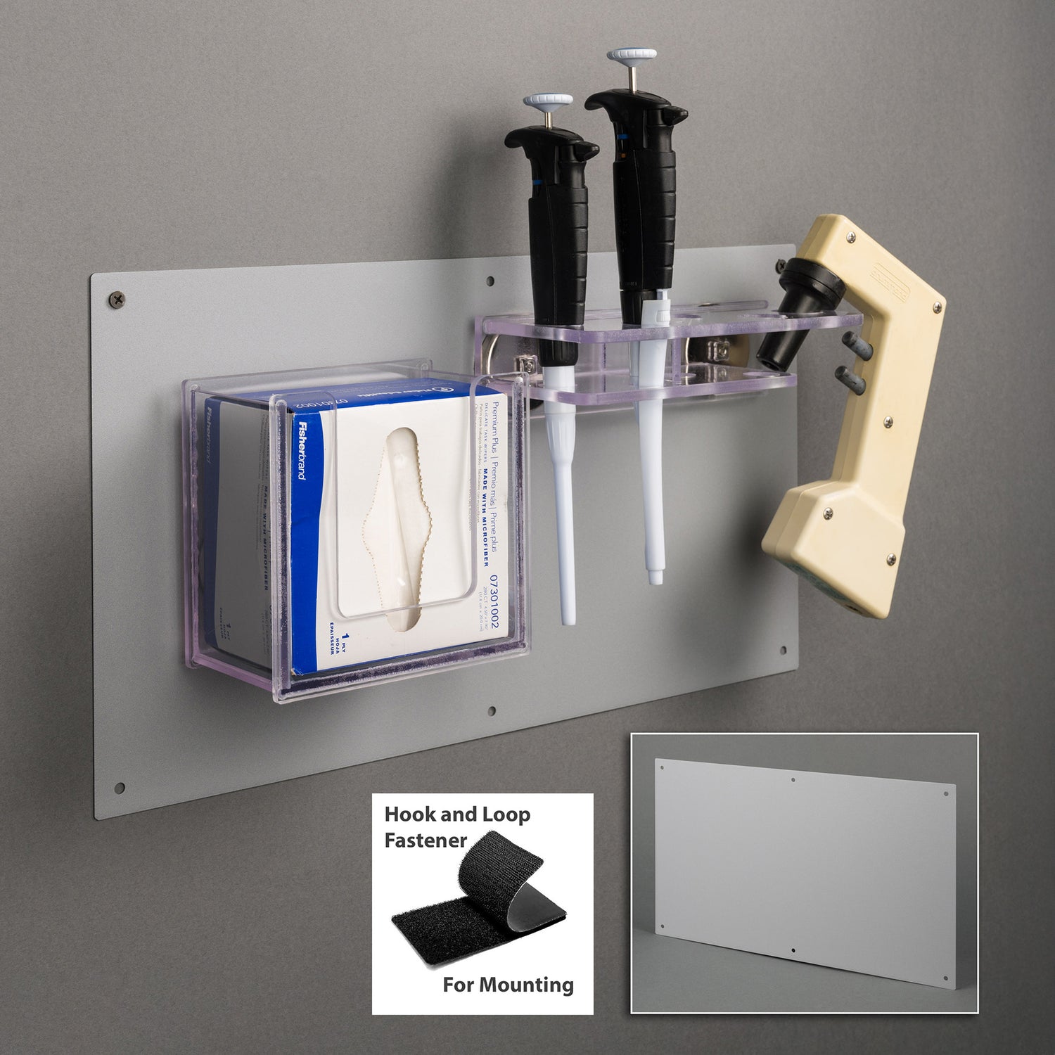 Powder coated steel mounting plate for Poltex AMOS (Adaptive Magnetic Organization System). Mount plate to inside of BSC, tissue culture hood, wall, or any other area lacking a surface that will accept Magnets. Then, choose any of the Poltex Magnet mounted products to attach to the AMOS plate. 10x18in plate size. Choose from wall mount (screws/anchors), High Bond Tape mount, or industrial strength Velcro.