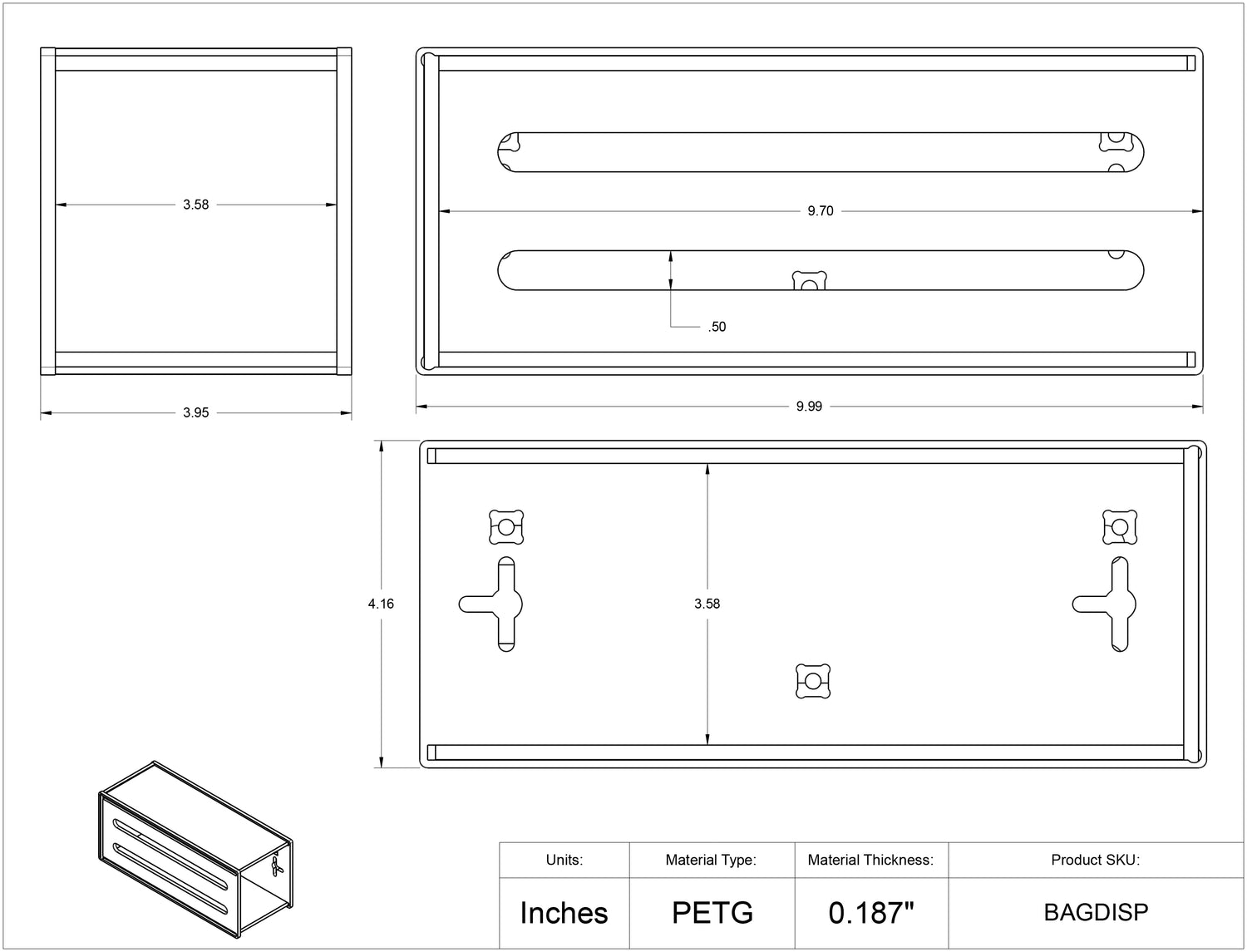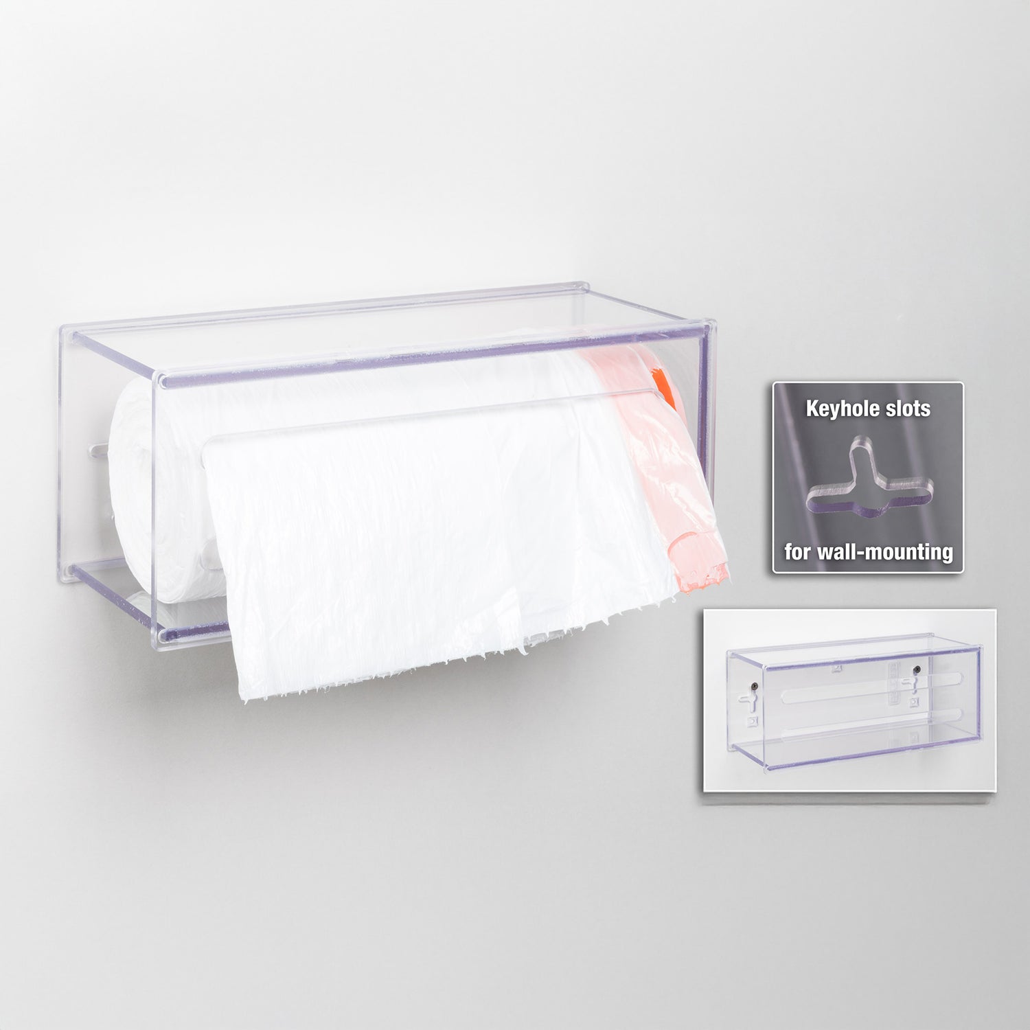 Bag dispenser for small bags or biohazard bags in rolls. ADA compliant. Magnet Mount (Powerful Magnets Included). See image for dimensions. CONSUMABLES NOT INCLUDED. Mounting methods available: Wall, Tape or Magnet Mount. Made in the USA.